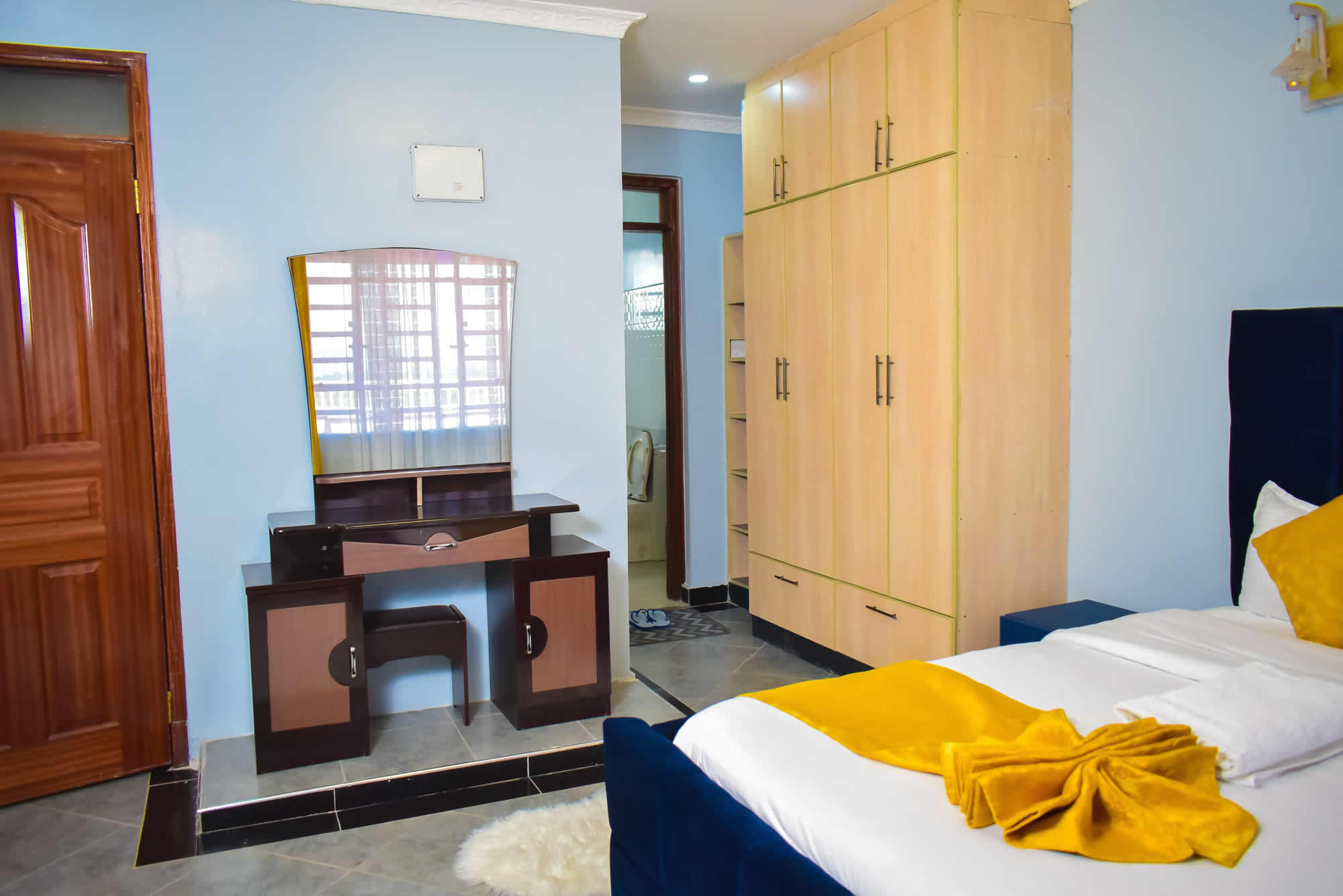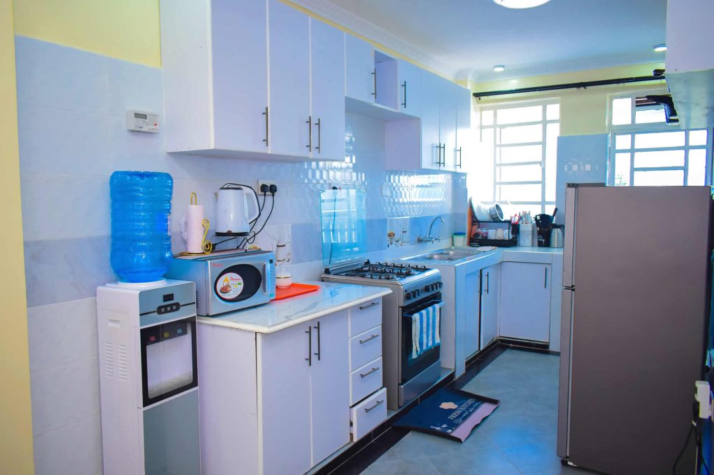 Discover tranquility in our thoughtfully designed one-bedroom apartments nestled in the heart of Nakuru. The well-appointed kitchen boasts contemporary appliances and ample counter space, with a fridge and a gas cooker, inviting you to explore your culinary skills.